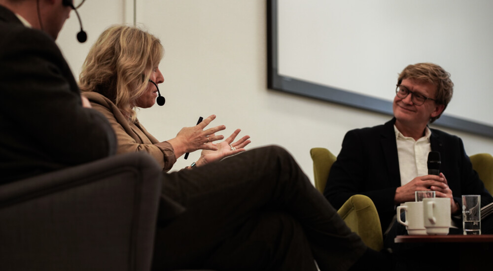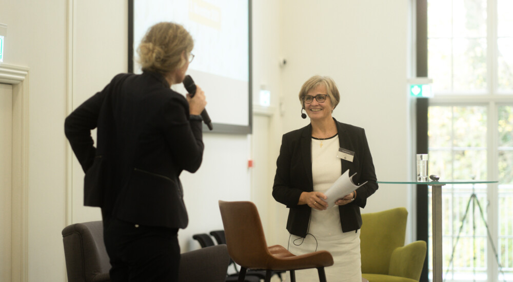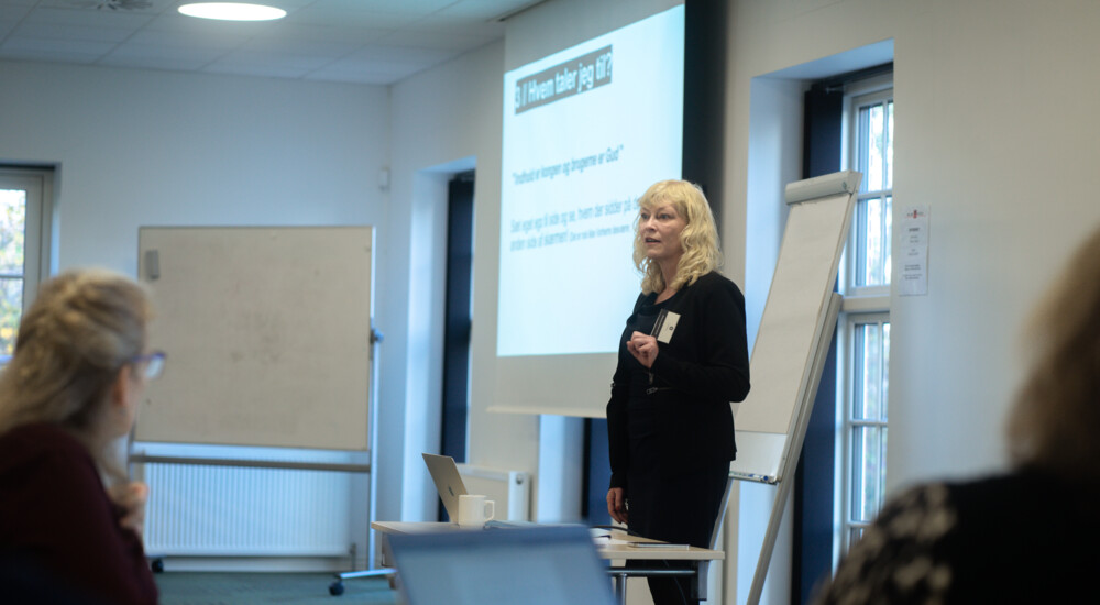 Biskop Marianne Gaarden (th.) holdt oplæg om sine argumenter for og imod digitale gudstjenester. Foto: Mads Odgaard Smidstrup