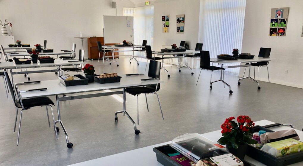 Mens Elev Sognehus holder lukket for kirkelige aktiviteter, bliver lokalerne brugt som midlertidigt klasselokale. Foto: Lehn Bang-Mortensen