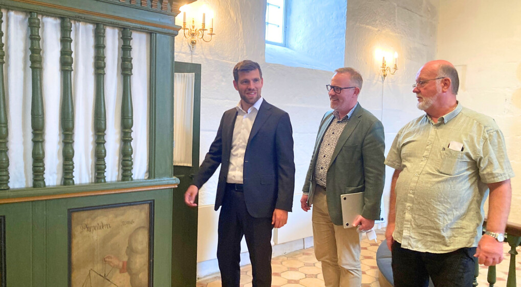 Kirkeminister Morten Dahlin og formand for Landsforeningen af Menighedsråd Anton Pihl har besøgt menighedsråd i hele landet op til det forestående valg. Foto: Landsforeningen af Menighedsråd
