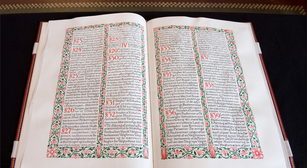 Danmarks Riges Grundlov fotograferet på Christiansborg. Foto: Scanpix/Nils Meilvang