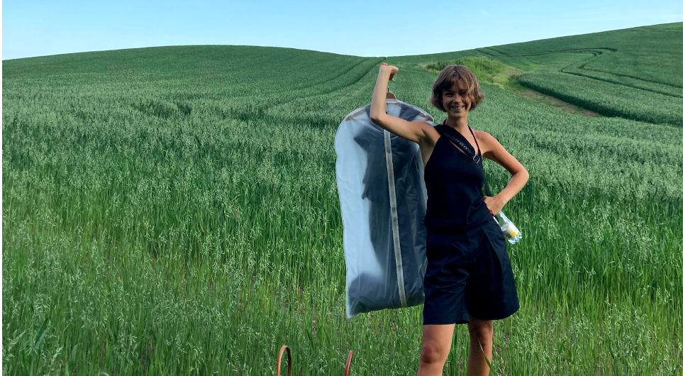 - Jeg er kun 23 år, men gør lige nu ikke noget af det, man gør som ung, siger Katrine Kjær Nielsen, modestuderende på Designskolen Kolding. - Vores frihed er taget fra os, konstaterer hun. Foto: Nathalie Hauser, Designskolen Kolding.
