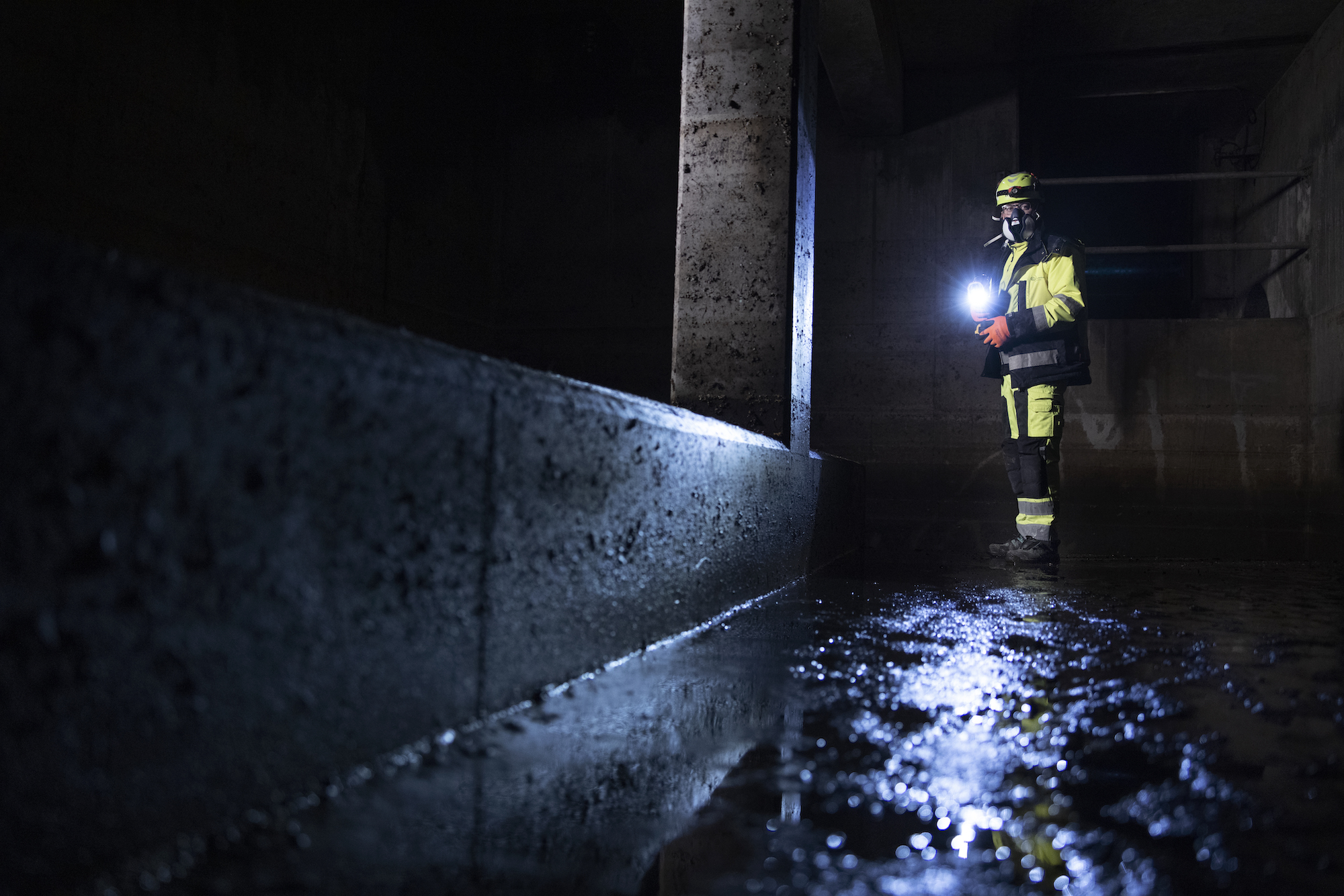 Jeg er faktisk aldrig bange, for jeg er heldigvis ikke alene. Vi er to, der går ind, og vi holder øje med hinanden og får hinanden med ud, hvis den ene løber tør for ilt, eller der sker noget andet. Udenfor er der en holdleder, der via radioen fortæller, om vi er på rette vej. Jeg har fuldstændig tillid til dem; vi er sikkerhedsmænd for hinanden. Bagefter er jeg altid helt udmattet.”