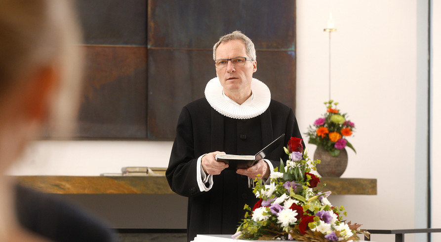 Præst læser ved kiste