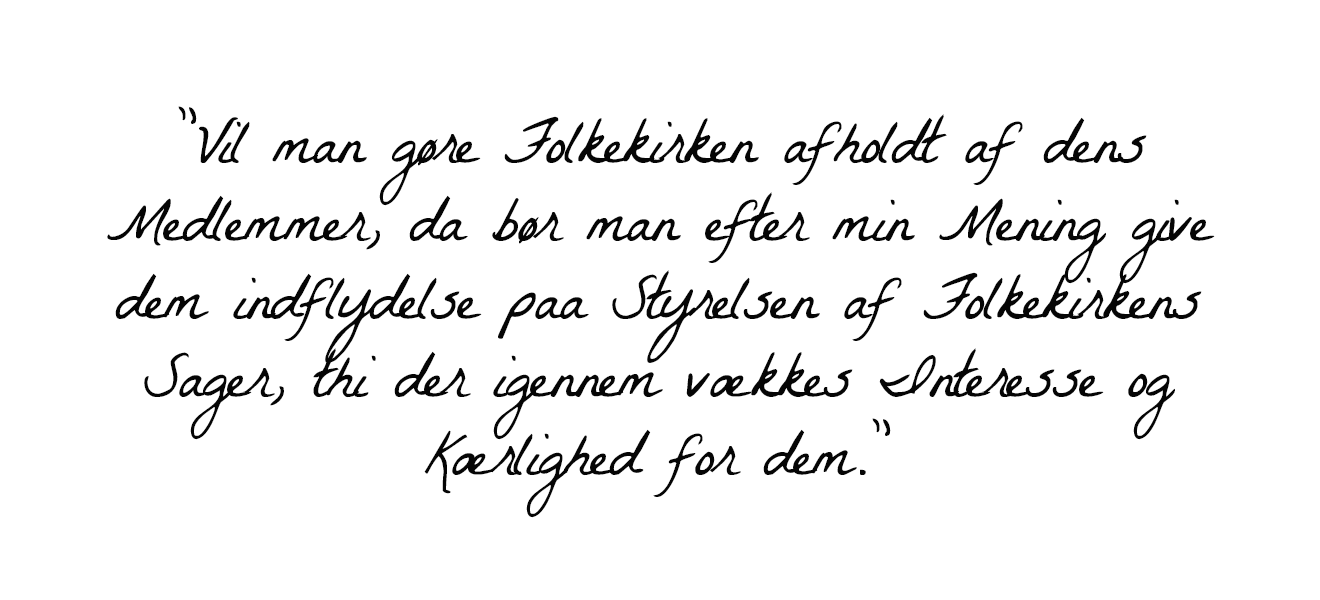 Citatet ovenfor stammer fra et lovforslag, som blev fremsat af venstremanden J.C. Christensen, der i 1901 ønskede at gøre folkekirken mere demokratisk.