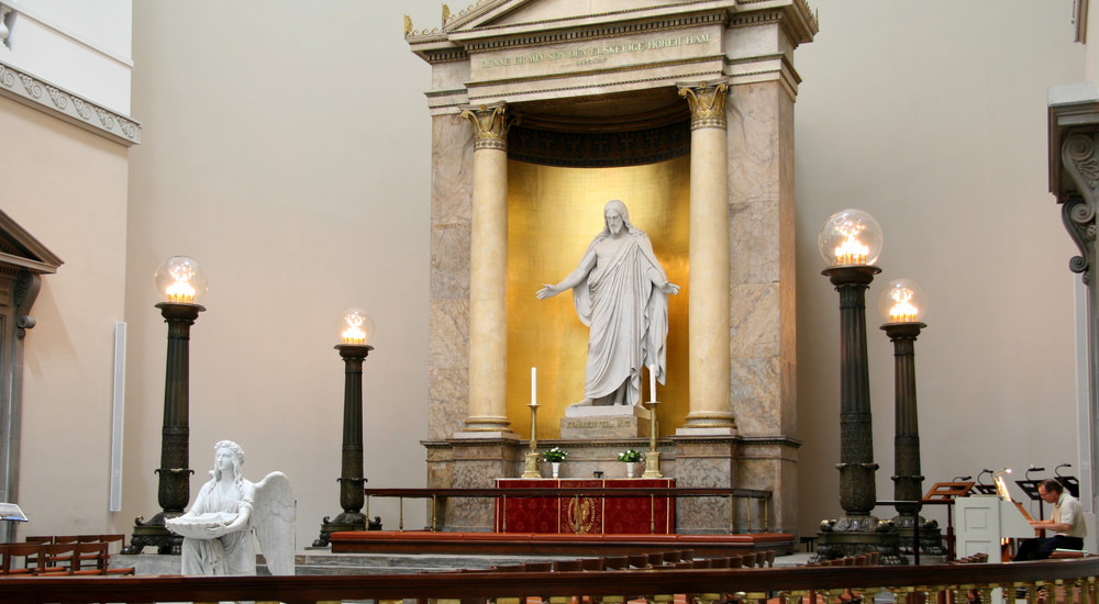 I Københavns Domkirke er billedhuggeren Bertel Thorvaldsens Kristus-figur det første, man ser, når man kommer ind i kirken.