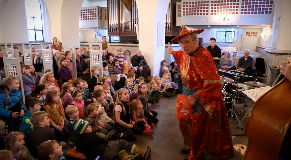 Jazz-musikeren Tom McEwan optræder med sit jazz-show ved en børnegudstjeneste i Nørresundby Kirke.
